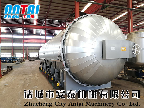 蒸汽由罐底進(jìn)入,在罐底設(shè)置蒸汽進(jìn)口由自動(dòng)閥門控制,蒸汽擴(kuò)散管豎向在罐底排列,擴(kuò)散管中小口(3mm、4mm、5mm)按一定規(guī)則和角度彌補(bǔ)排列,確保蒸汽進(jìn)入到罐內(nèi)后溫度均勻向四周擴(kuò)散,防止蒸汽擴(kuò)散不均造成的產(chǎn)品質(zhì)量不同。設(shè)定工作程序后,控制系統(tǒng)自動(dòng)進(jìn)行升溫、保溫、硫化等工作,硫化結(jié)束后發(fā)出聲光提示并停止工作。